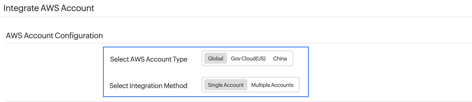 • Select the AWS account type - Global region, GovCloud (US) or China region.