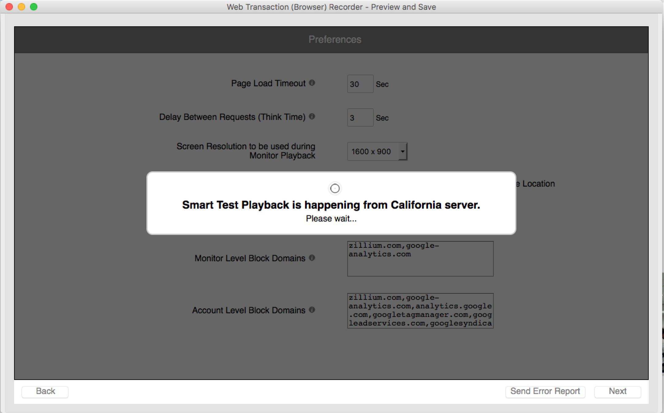 NoteIf the Recorded script has captcha fields, you'll be notified about this as a warning/information just before the actual Test playback starts. You can always skip this and proceed with the Test Playback.