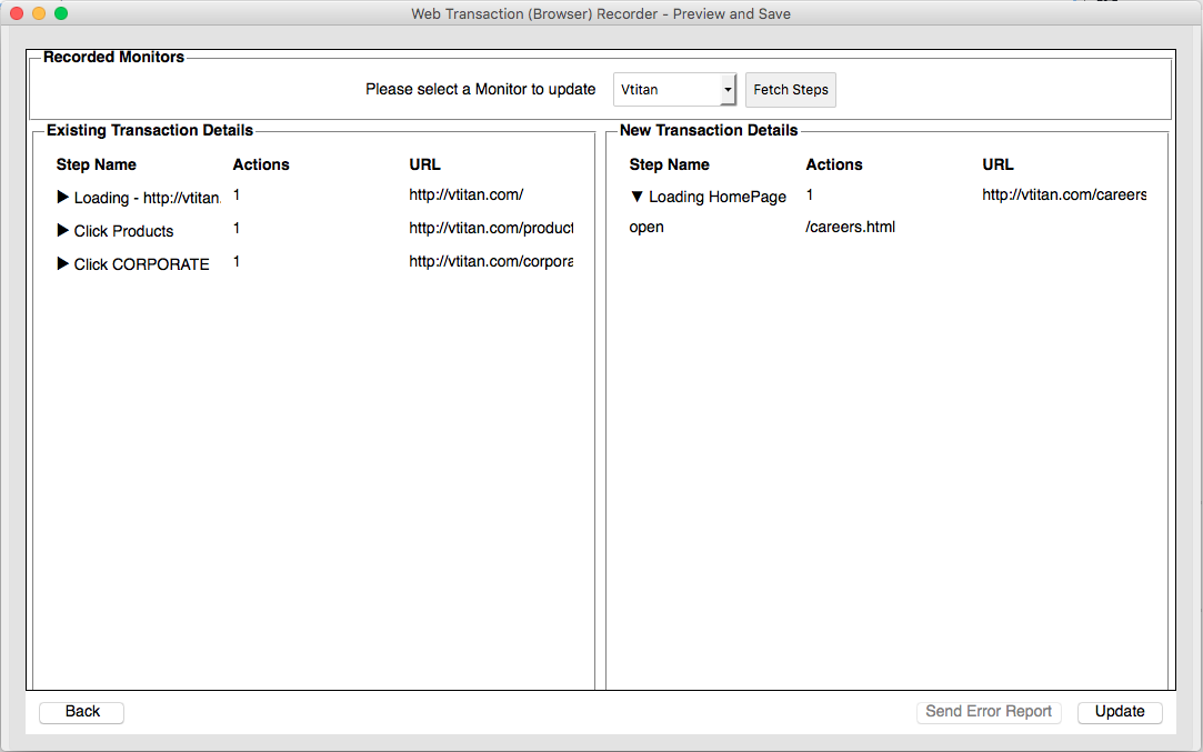 - If you wish to update an existing monitor configured in your account, then you may choose the relevant monitor from the drop down box; Click the Fetch Steps button to view the steps for the chosen monitor.