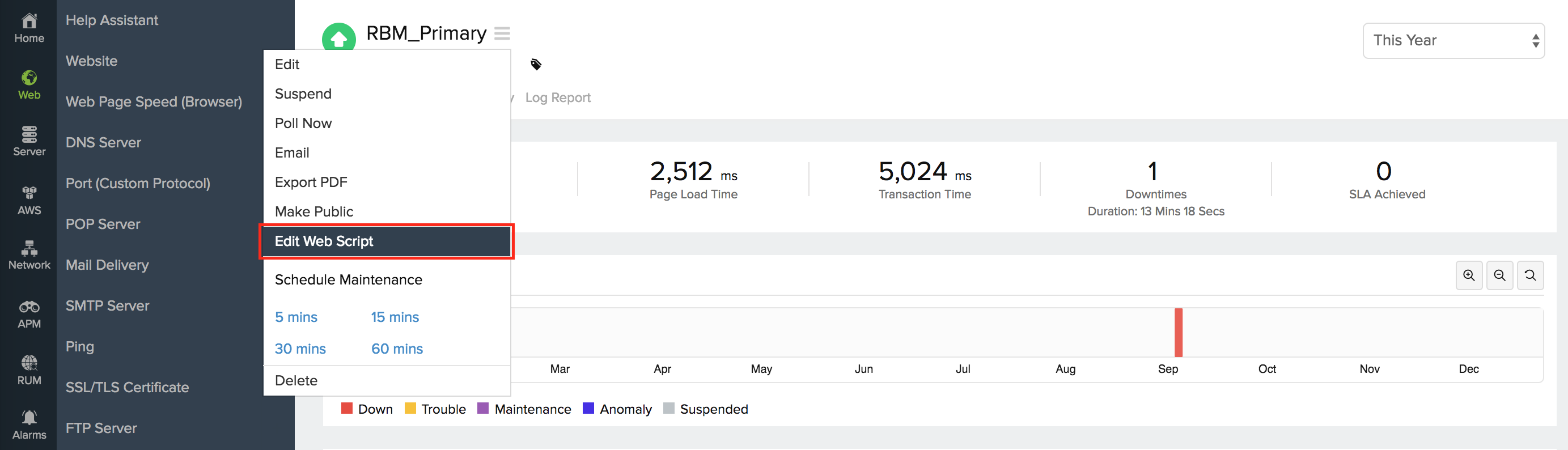 - Alternatively, you can also open the edit monitor form and click Edit Web Script option given there.