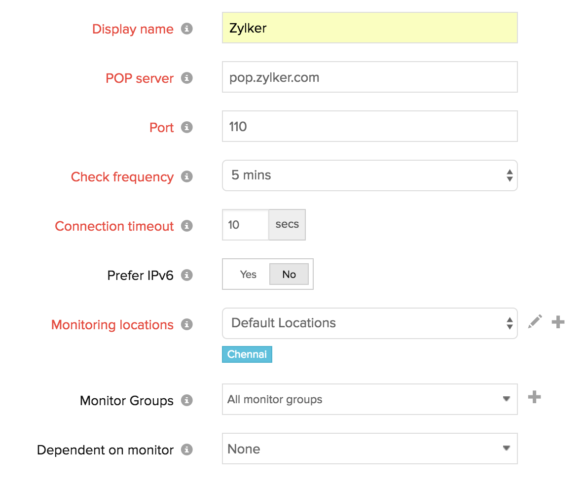 - Prefer IPv6: If you want to monitor your POP Server over IPv6 enabled locations, simply move the rocker button to "YES" when creating or editing a monitor form.