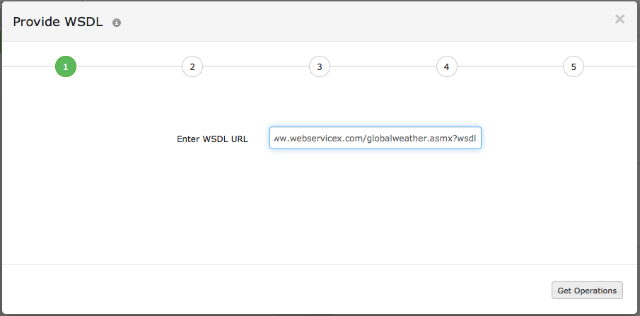 - Endpoint URL: Type the SOAP web service endpoint URL which needs to be monitored. Click Get Operations to set-up and initiate the SOAP Wizard.