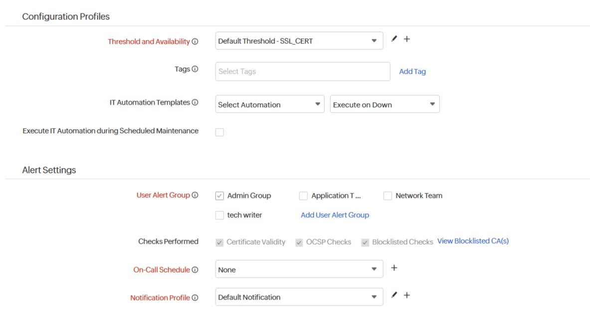 - Certificate expiry threshold: A notification is raised this many days before the certificate expires. Your monitor turns to trouble as and when this threshold is breached.