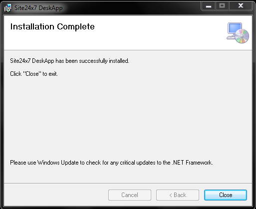 - Install the Site24x7_DeskApp.msi file on your desktop.