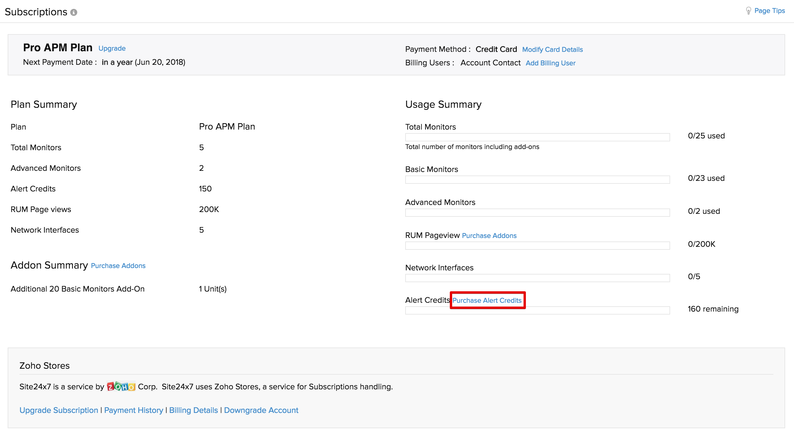 - Click Purchase Alert Credits lised under Zoho Stores.