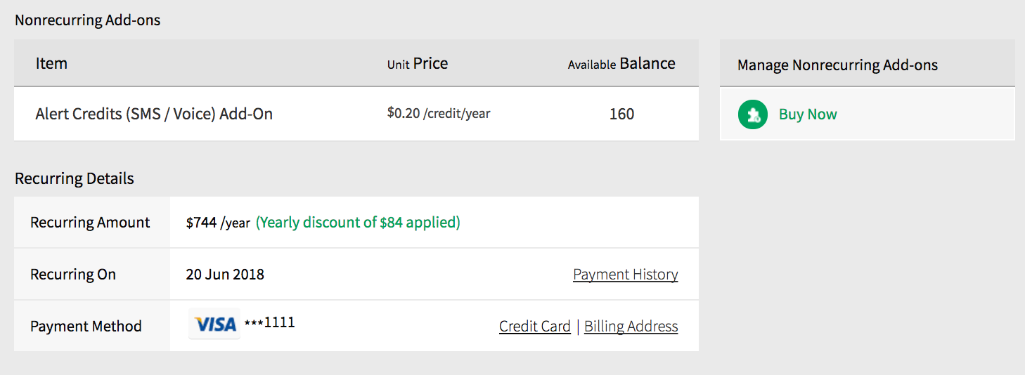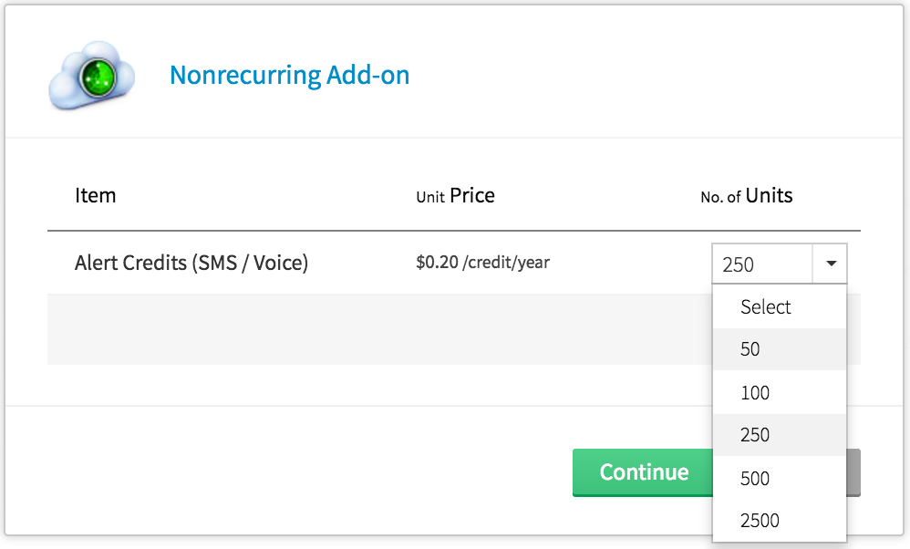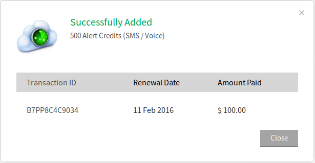 Voice or SMS alerts allow you to instantly receive critical downtime alerts via a voice synthesized phone call or a SMS. Credits (non-recurring) will be added to your account as you sign up for the pack. Credits are based on pay for what you use. Any unused credit will be carried over to the next subscription cycle. In addition, you will be able to purchase additional alert credits on demand.