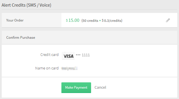 - Verify your alert credit count and click Make Payment to purchase additional credits.