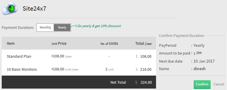 Follow below steps to upgrade to paid Site24x7 subscription: