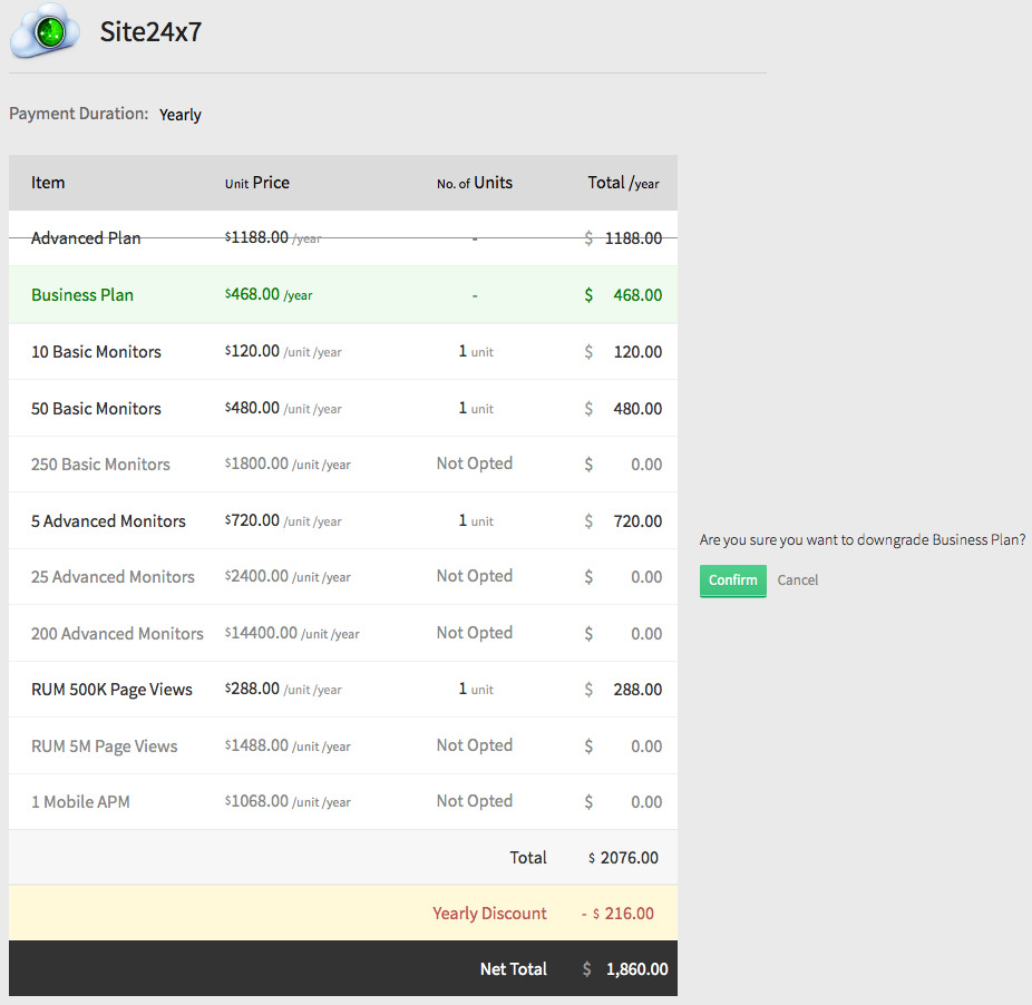 - A confirmation message about the modified monthly to yearly plan is displayed.