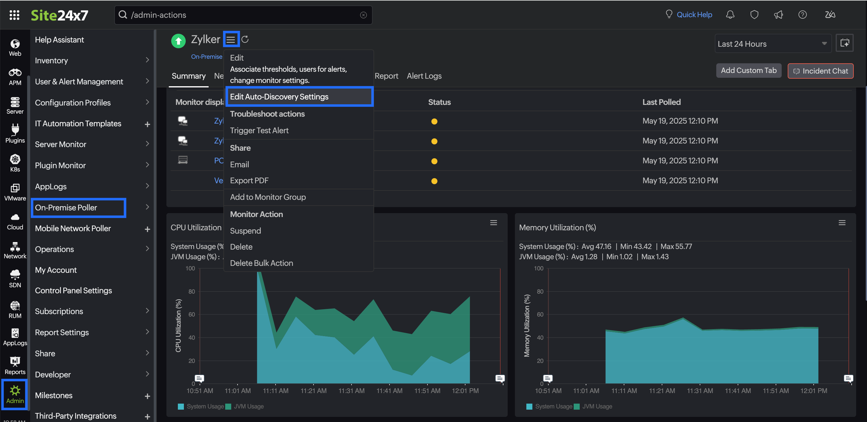on the Summary page near the selected On-Premise Poller name. - Click Edit Auto-Discovery Settings.