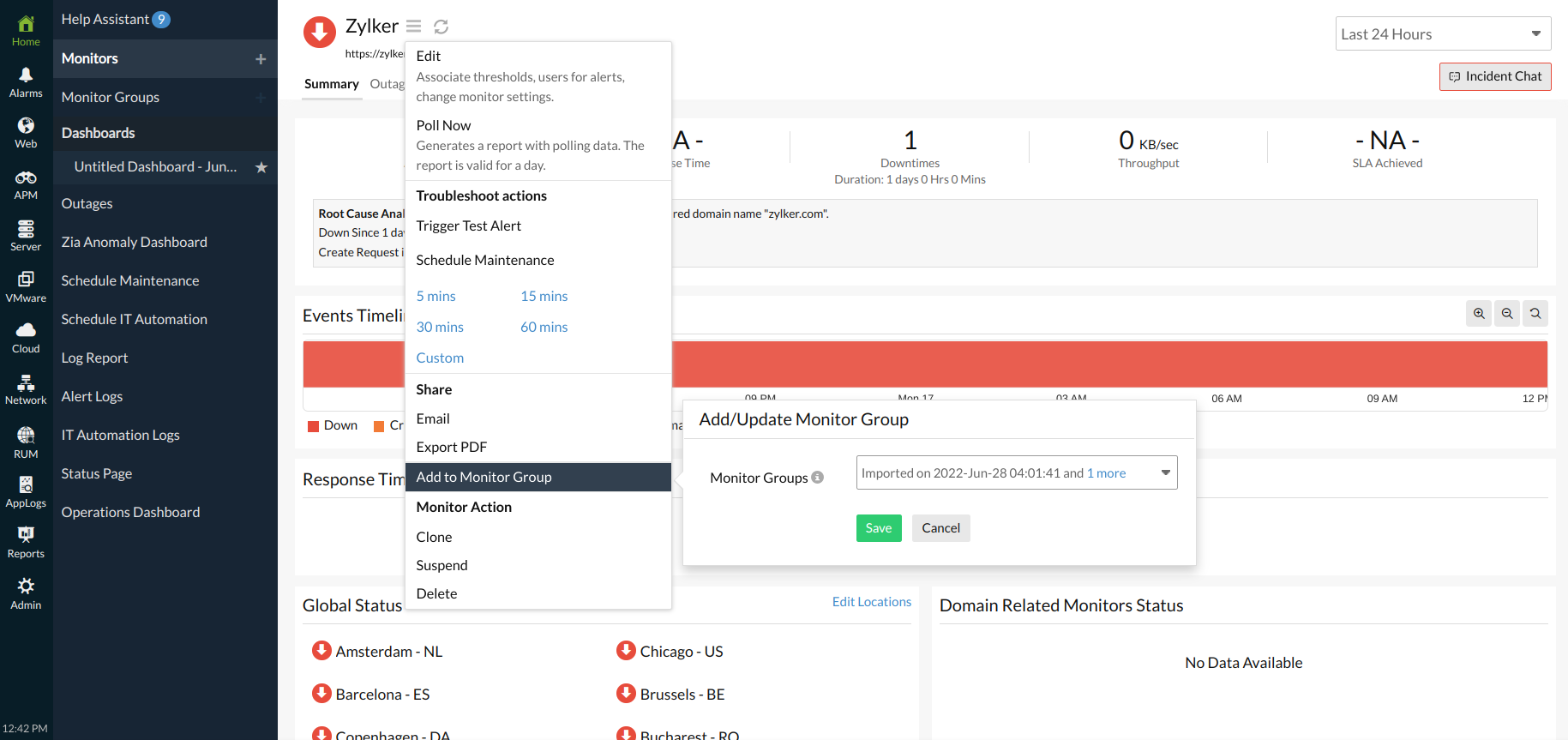 - Click the Hamburger icon next to the monitor name and click Add to Monitor Group.