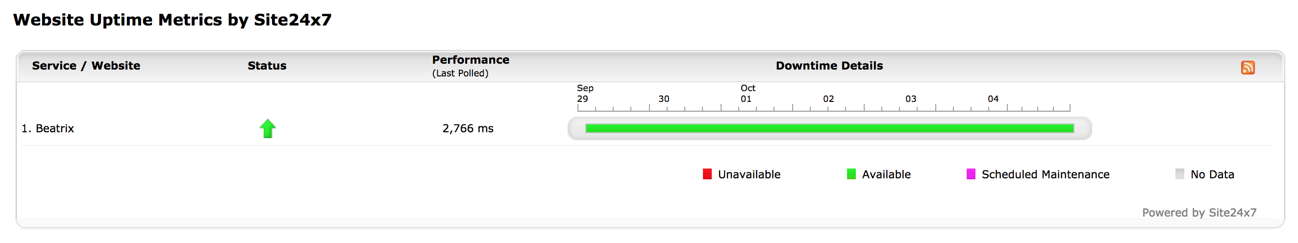 • Time Period: Choose the time period for which the uptime metrics will be displayed.