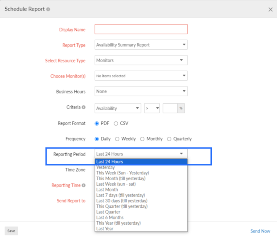 - Monitors: You can choose multiple monitors from the drop-down for which you wish to schedule the report.