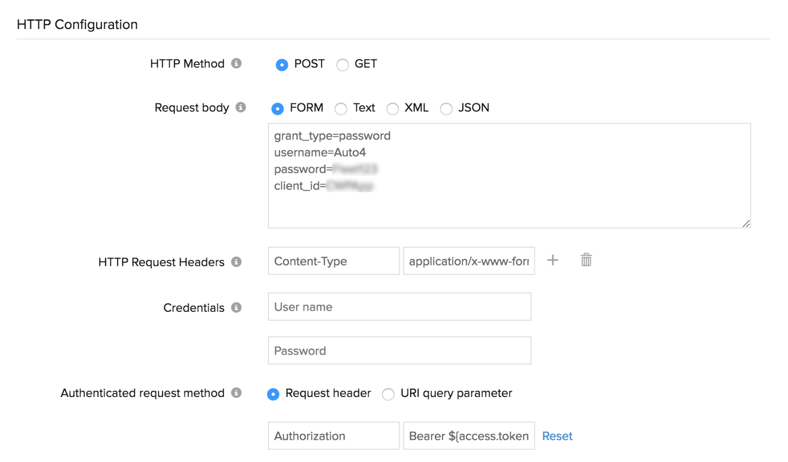 - HTTP Method: Specify the method to be used for connecting with the webpage– POST or GET. Use the radio buttons to configure the form submission method and appropriate body type for the POST HTTP method.