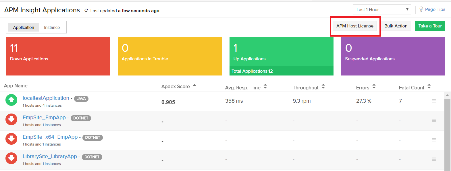 - Click on APM Host License button, provided on the top-right of the menu bar.