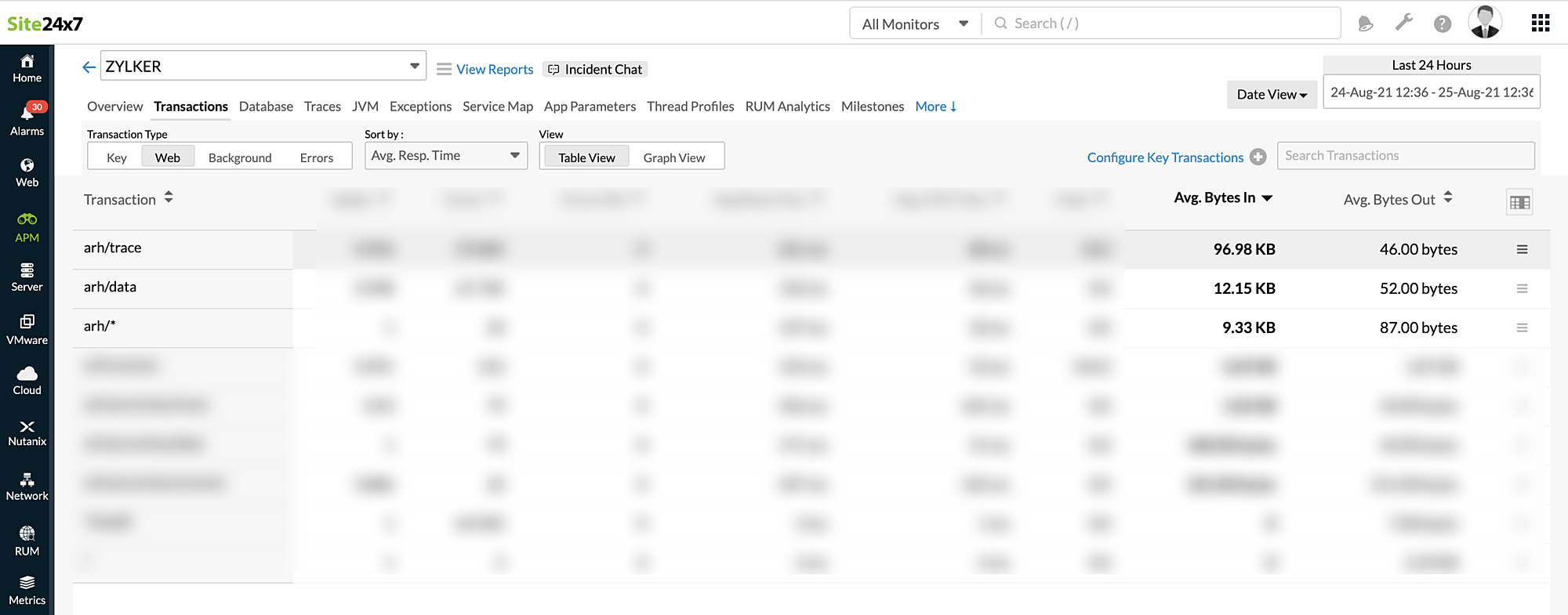 For instance, from the above image, you can understand that the particular transaction arh/trace has a higher request size in comparison with other requests.