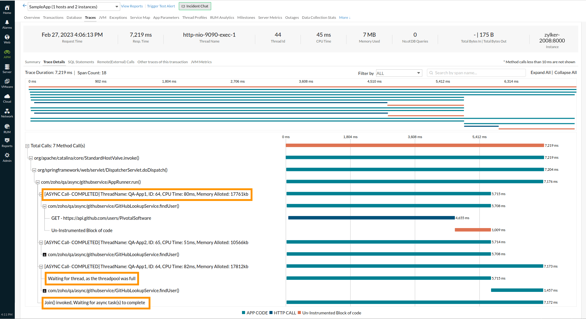 The traces captured in APM Insight provide visibility into how asynchronous tasks are executed concurrently across your environment.