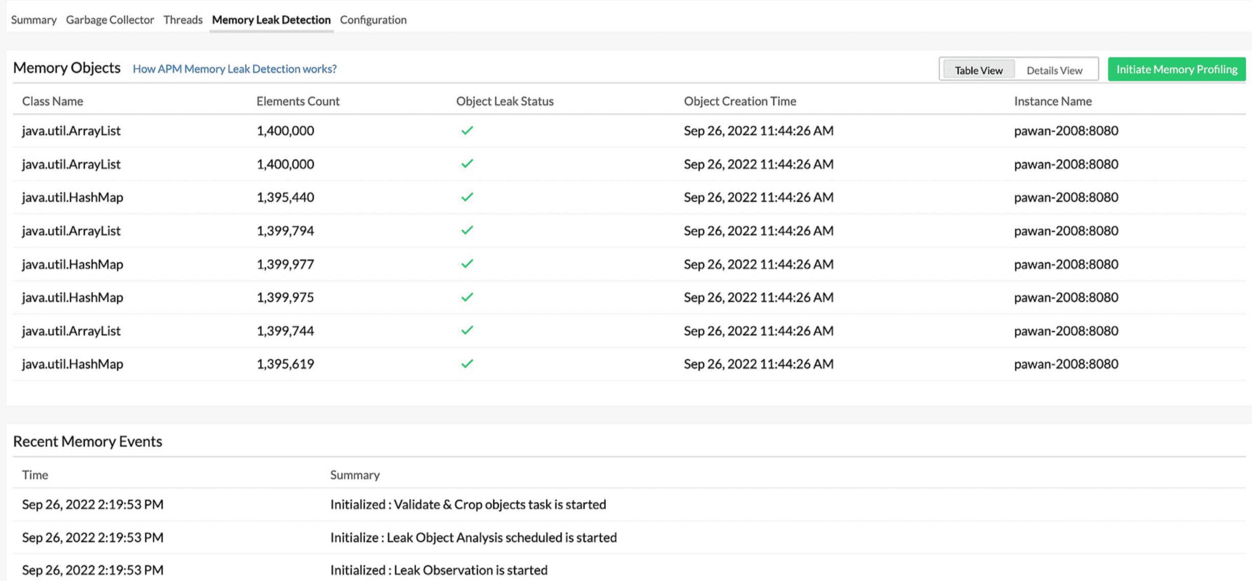 This tab allows you to quickly detect and address memory leaks before they seriously impact your application's performance.
