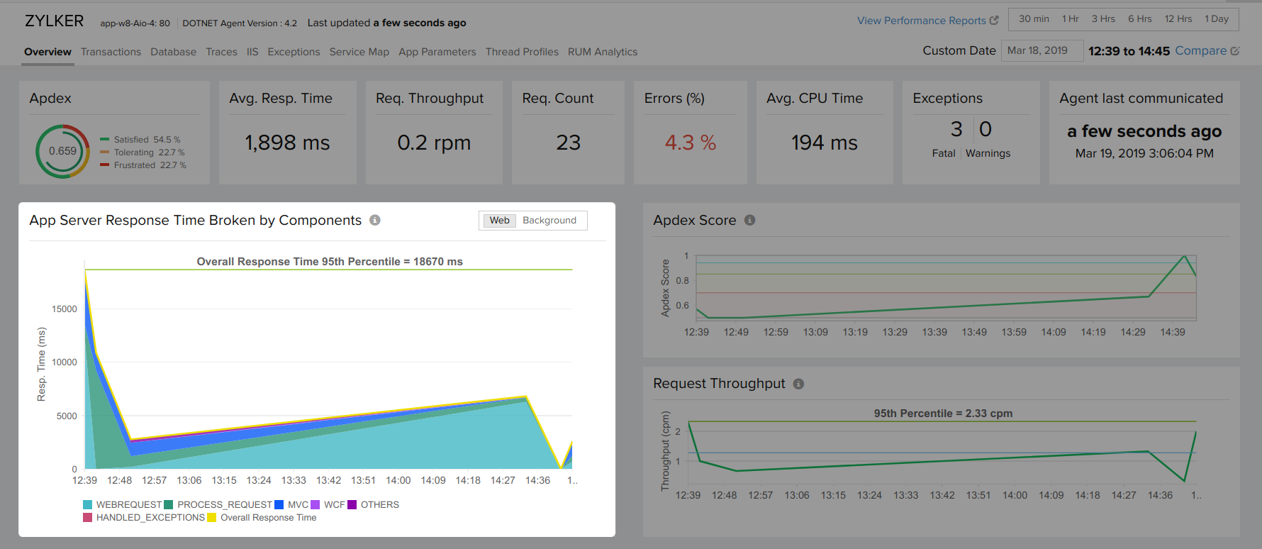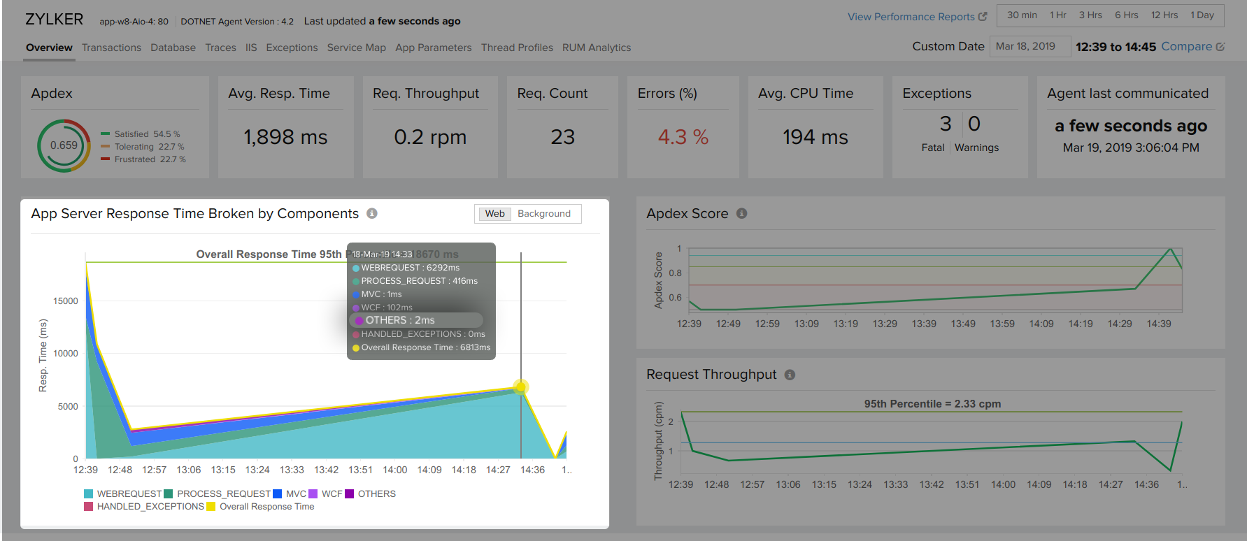 In case of synchronous applications, sum of the response time of app server components will be equal to the overall response time.
