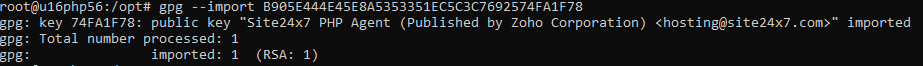 "gpg --import site24x7apmphp.pub" or "gpg --import site24x7apmphp.asc"