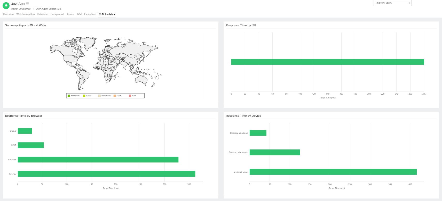 Also, the application level analytics based on Country, ISP, Browser and Device data can be viewed at one shot.