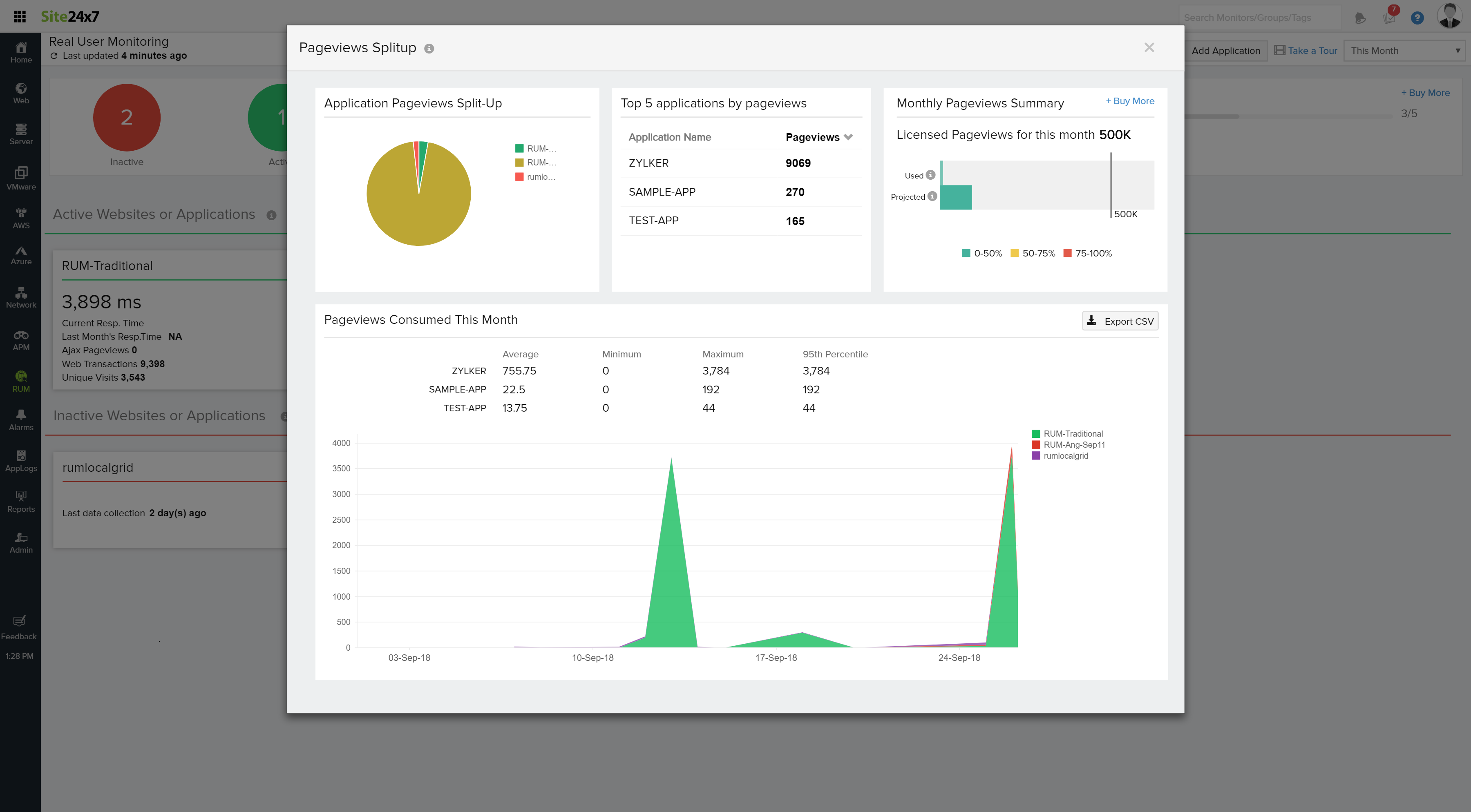 You can view the pageviews consumption split up by your individual applications for that particular month. Current usage and Projected usage along with the licensed limit is displayed in the same tab and you can always upgrade your plan.