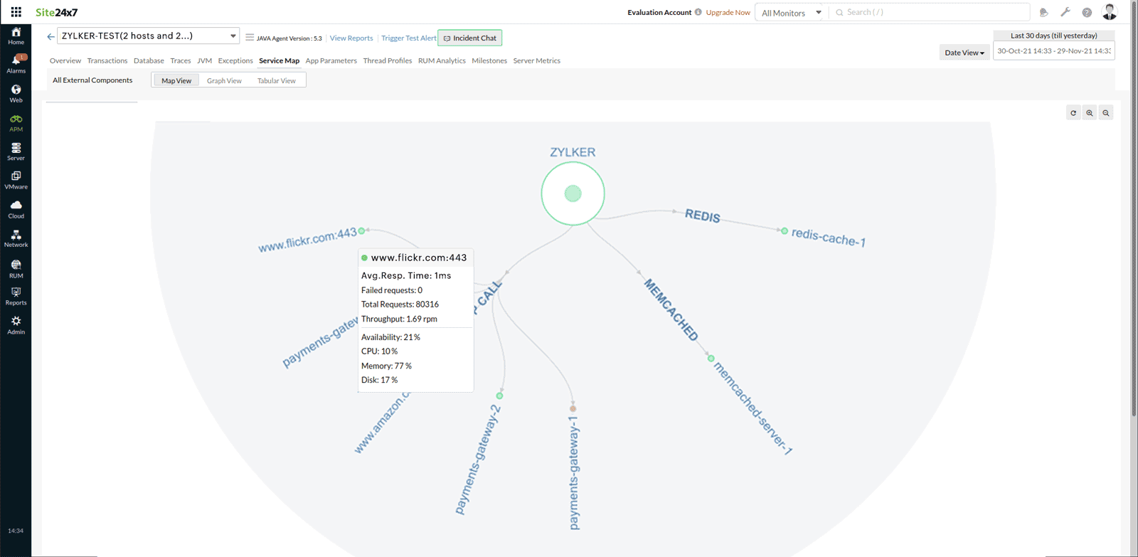 The Service Map helps you detect and troubleshoot your application problems related to the associated servers before your customers are impacted.