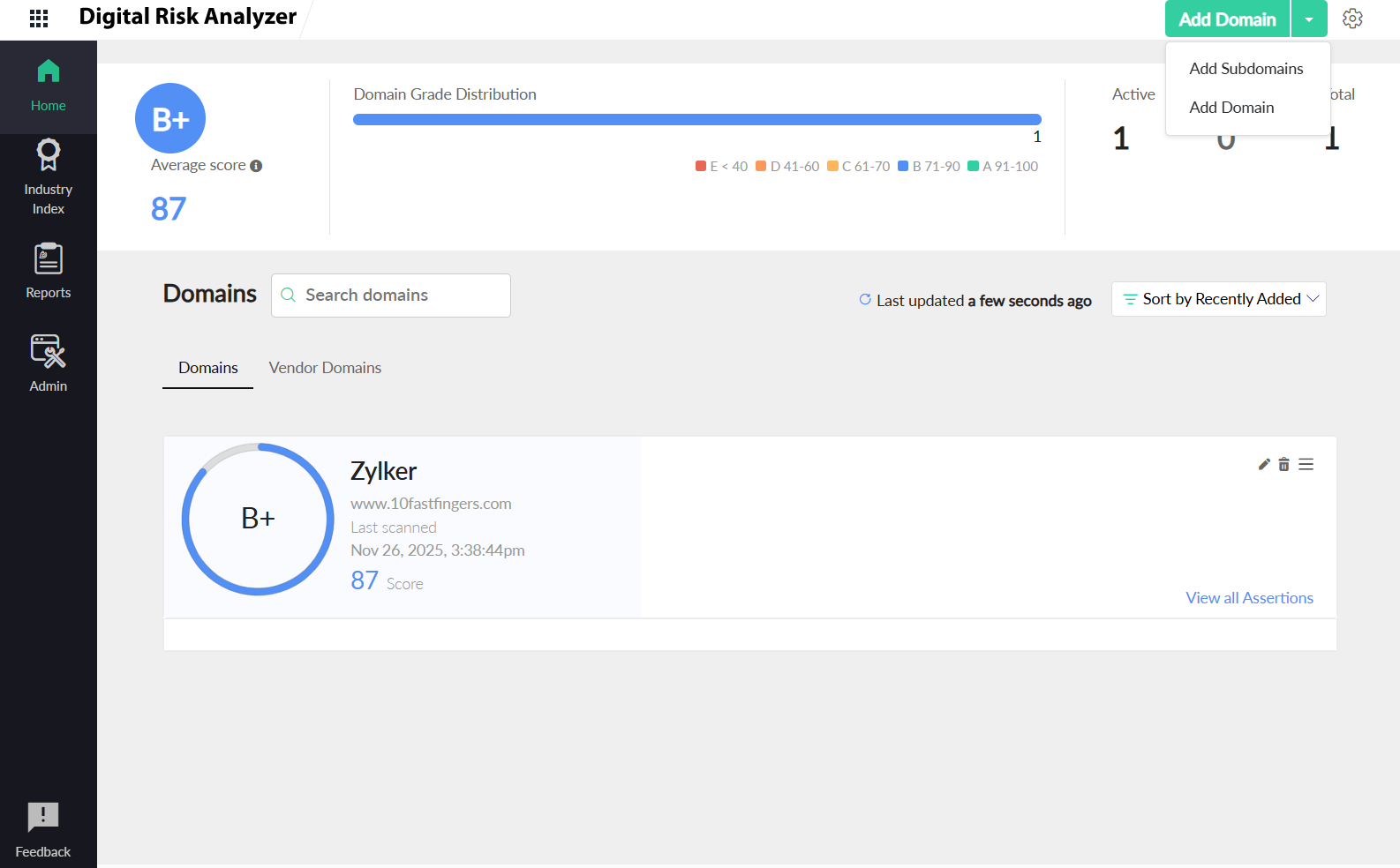 Your digital environment extends far beyond your primary domain. This includes subdomains that frequently host applications, stage environments, and legacy services that attackers target. Digital Risk Analyzer helps you discover and assess all associated subdomains; detect potential threats early; and maintain continuous, comprehensive domain security.