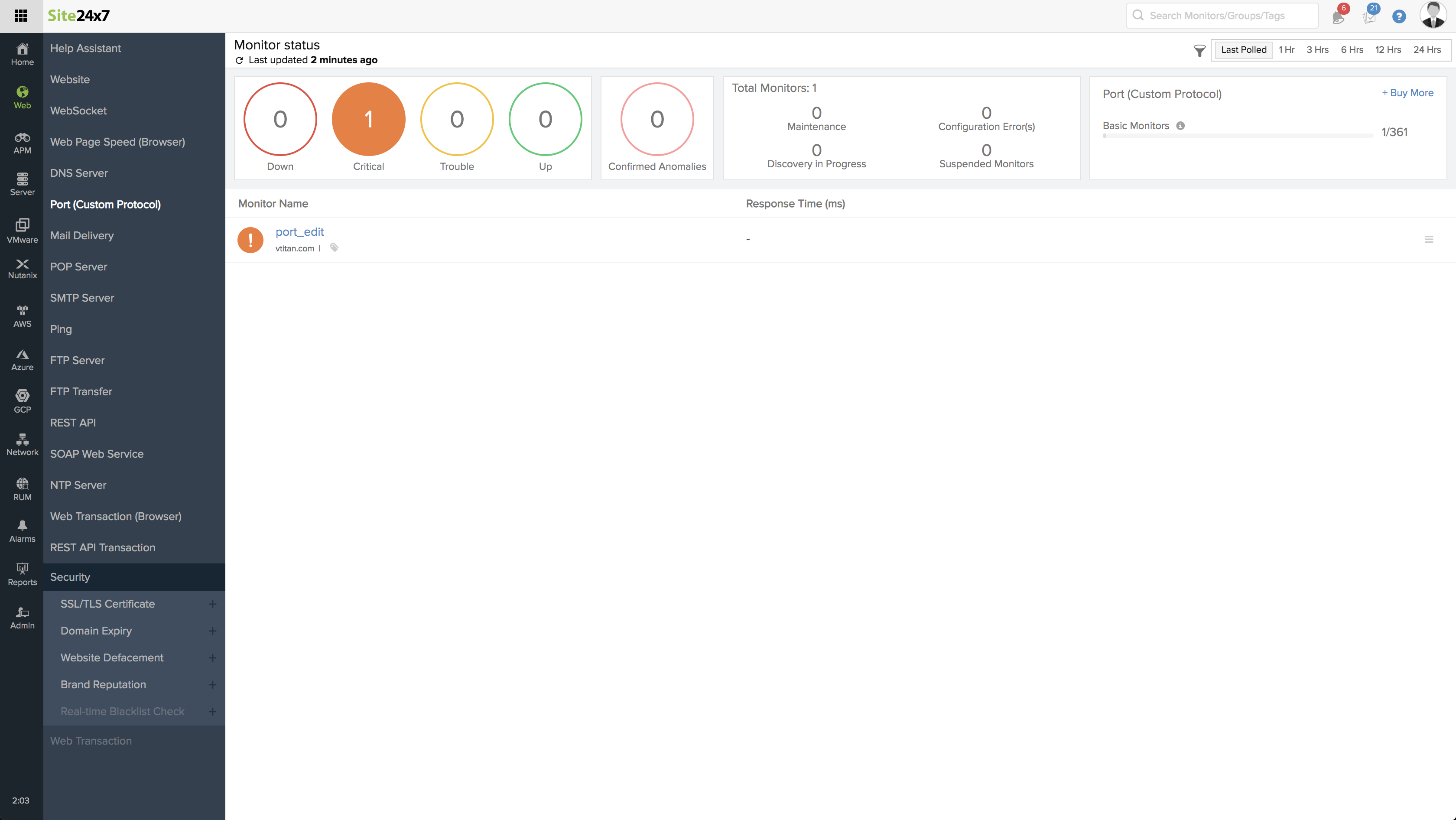 Learn more: How to set up a Port (Custom Protocol) Monitor?