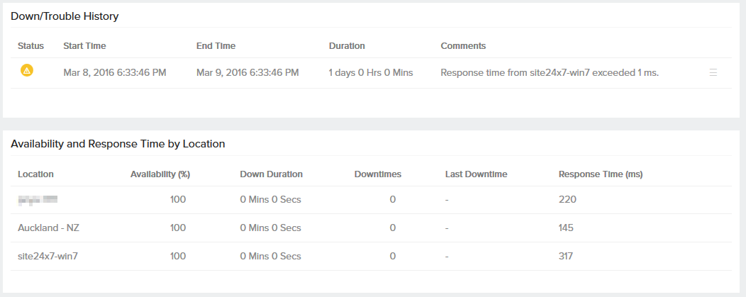 - Availability and Response Time by Location.