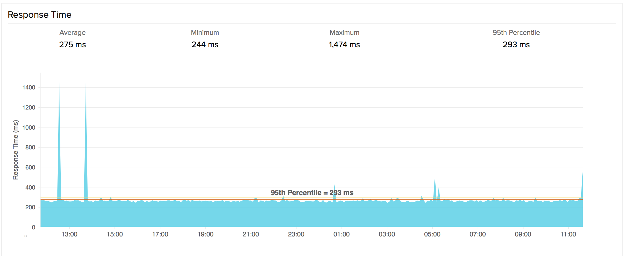 Response Time by Location graph shows the median response time for each day or hour for each monitoring location. This can be utilized to check the average response time of your monitors from different monitoring locations. Location legend is provided with the graph for easy administration.