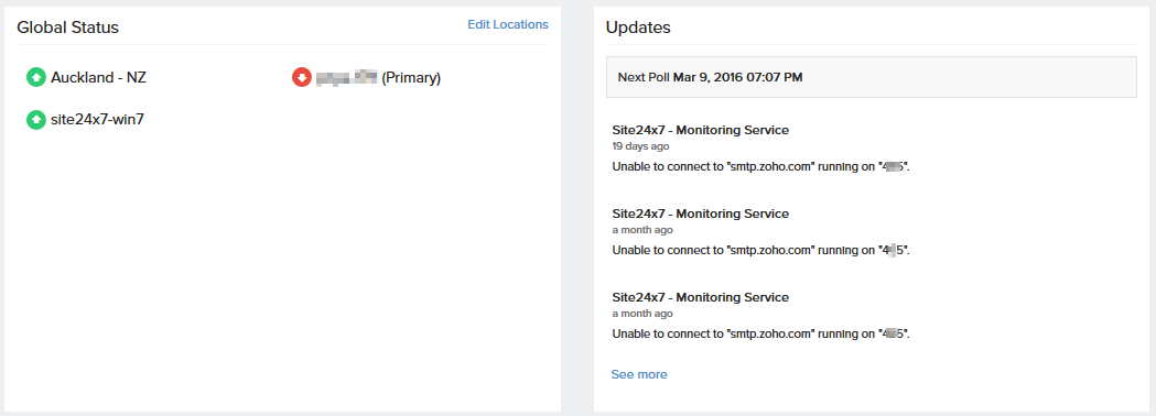Get an instant peek into the actual real-time status of your monitor from the configured geographical locations. Additionally, you can also view the real-time data from the various poll cycles and it includes the outages and trouble alerts data.