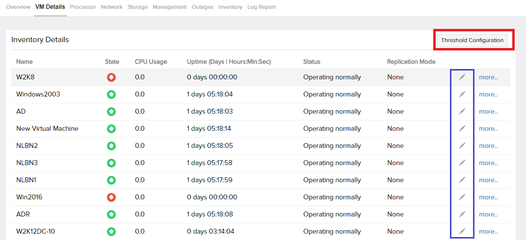 Choose to automate VM restart, when its CPU value exceeds the given threshold. Then, map the added automation with the CPU Usage threshold of the VM causing the issue using the pencil icon. For multiple selection of the VMs, click on the Threshold Configuration button and map the automation with the CPU Usage threshold.