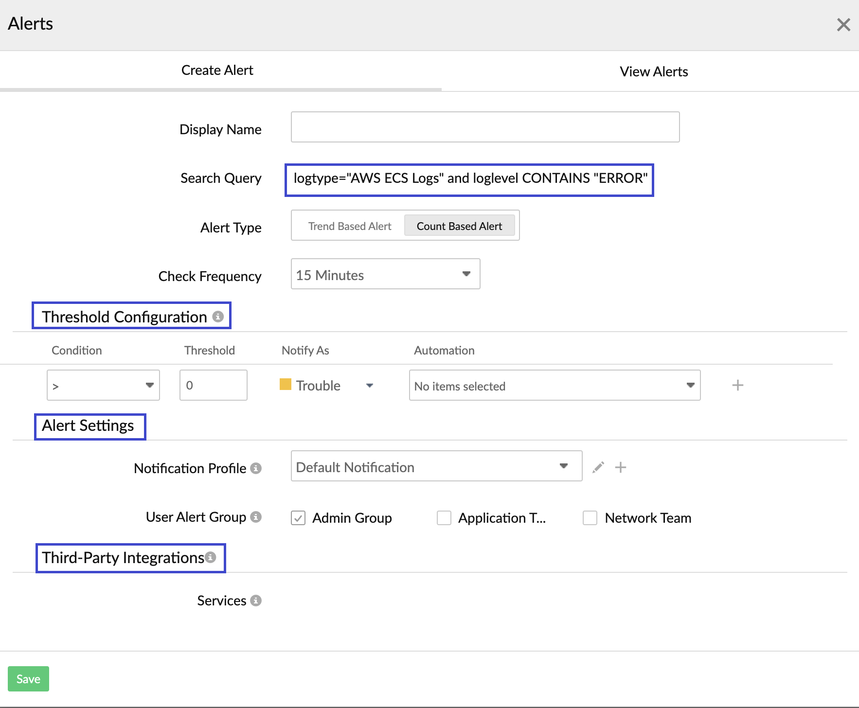 - Click Save to save the Log Profile.