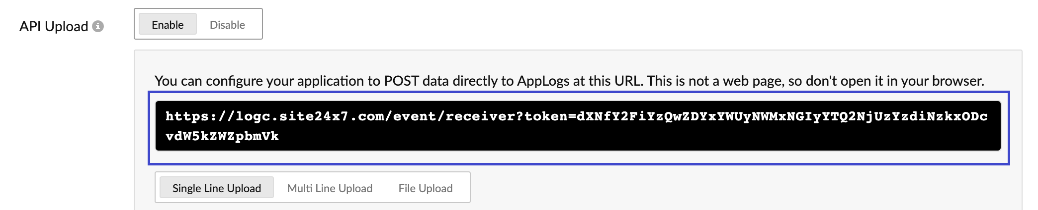 "URI": "/event/receiver?rawLogs=true&token={TOKEN}",
