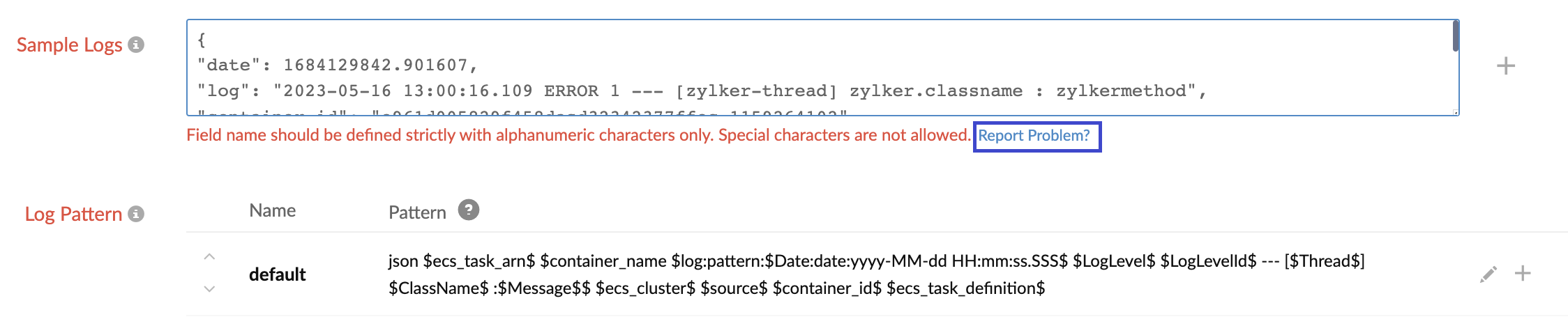 If you still face any problems in creating the log pattern, you can click Report Problem. This will send the log pattern and configured sample logs to our support for analysis, or you can reach out to support@site24x7.com.