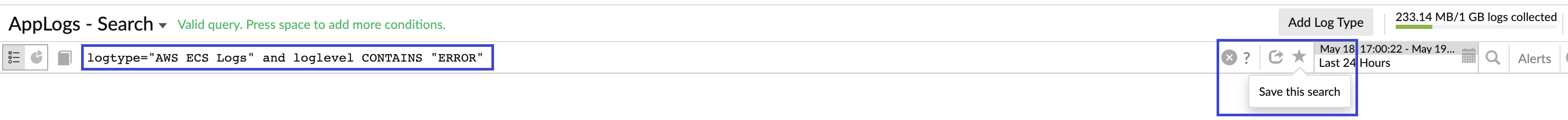 Once you start pushing your logs to AppLogs, you can create a saved search and alerts to monitor your logs.