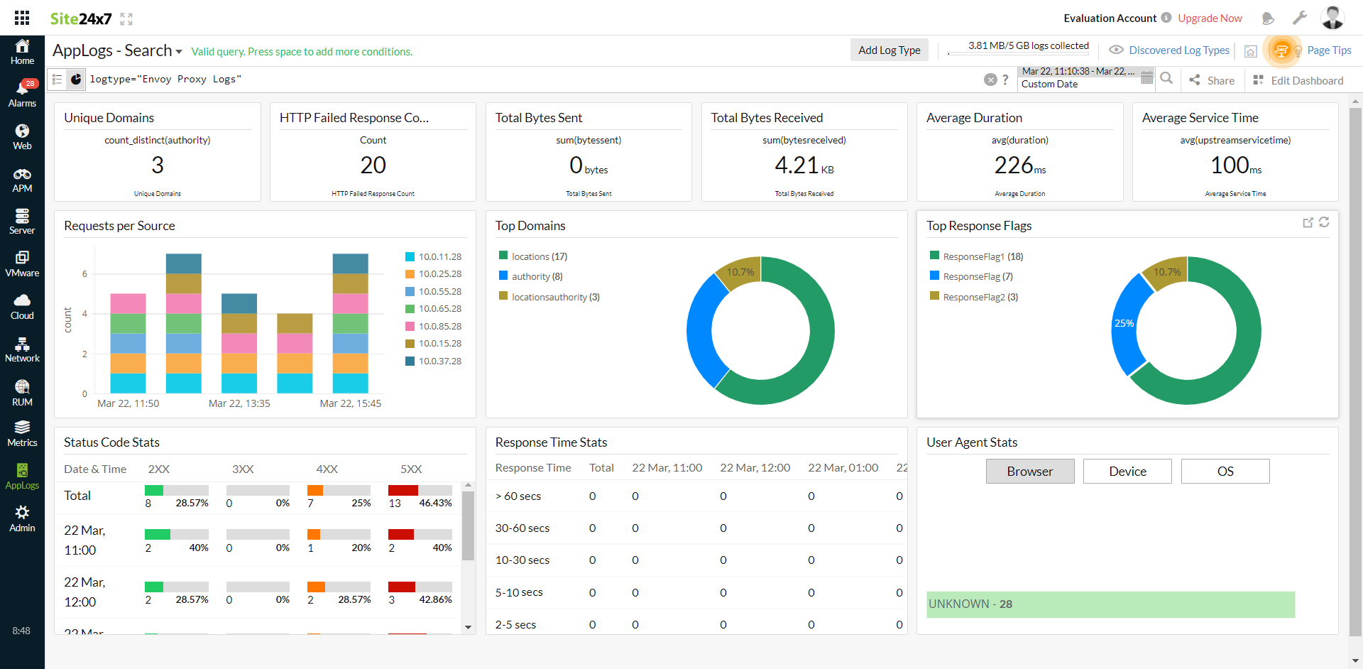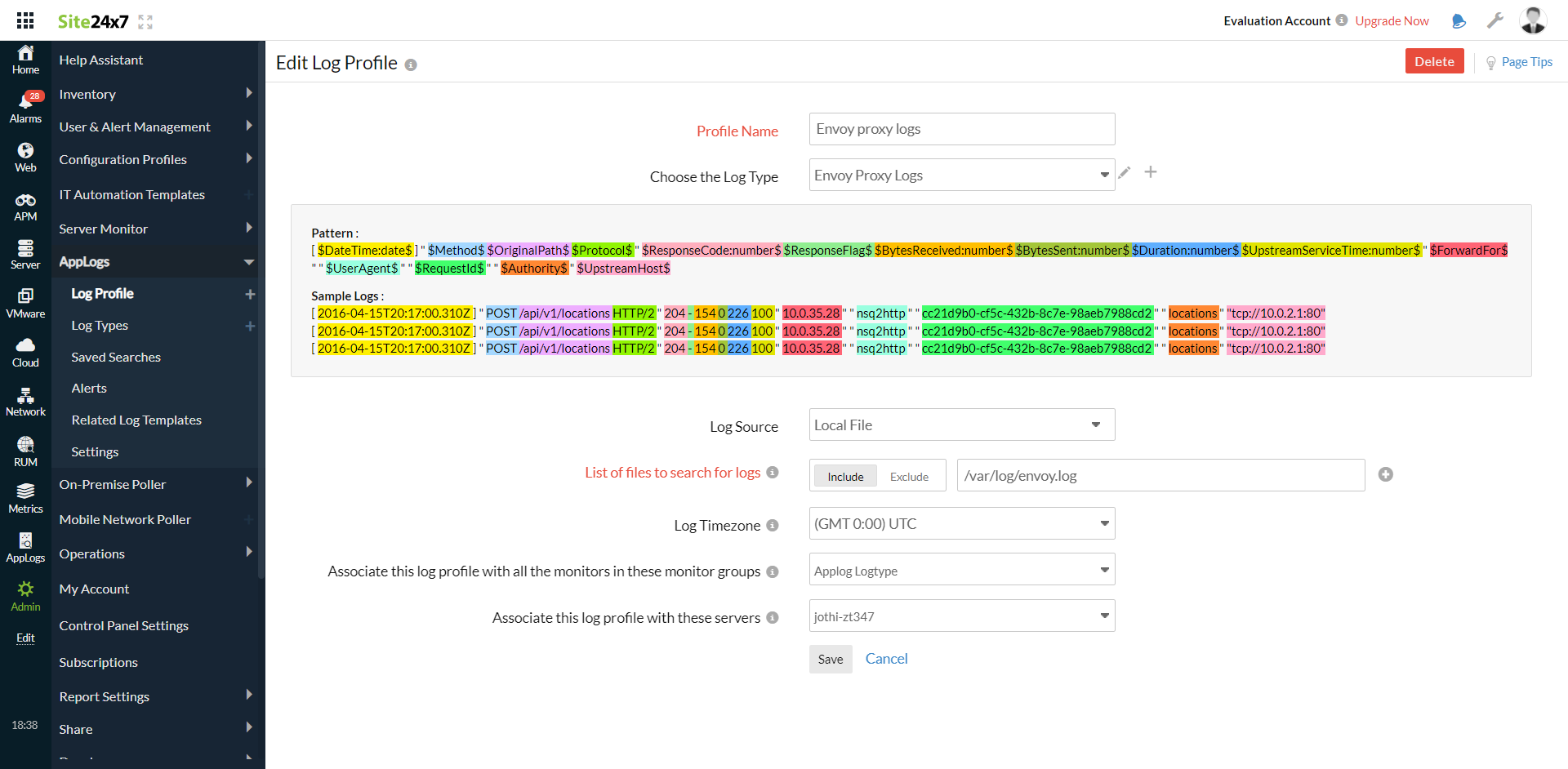 Envoy proxy is an open-source service proxy that is designed especially for cloud-native applications. This high-performance distributed proxy is intended for both single and large services as well as applications. Site24x7 AppLogs provides built-in support for Envoy proxy logs.