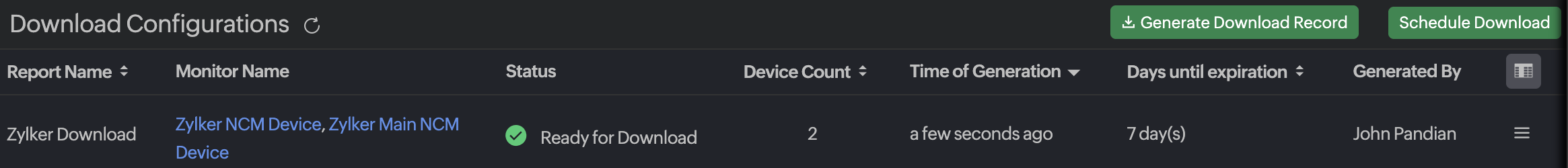- Navigate to Network > NCM > Download Configurations.