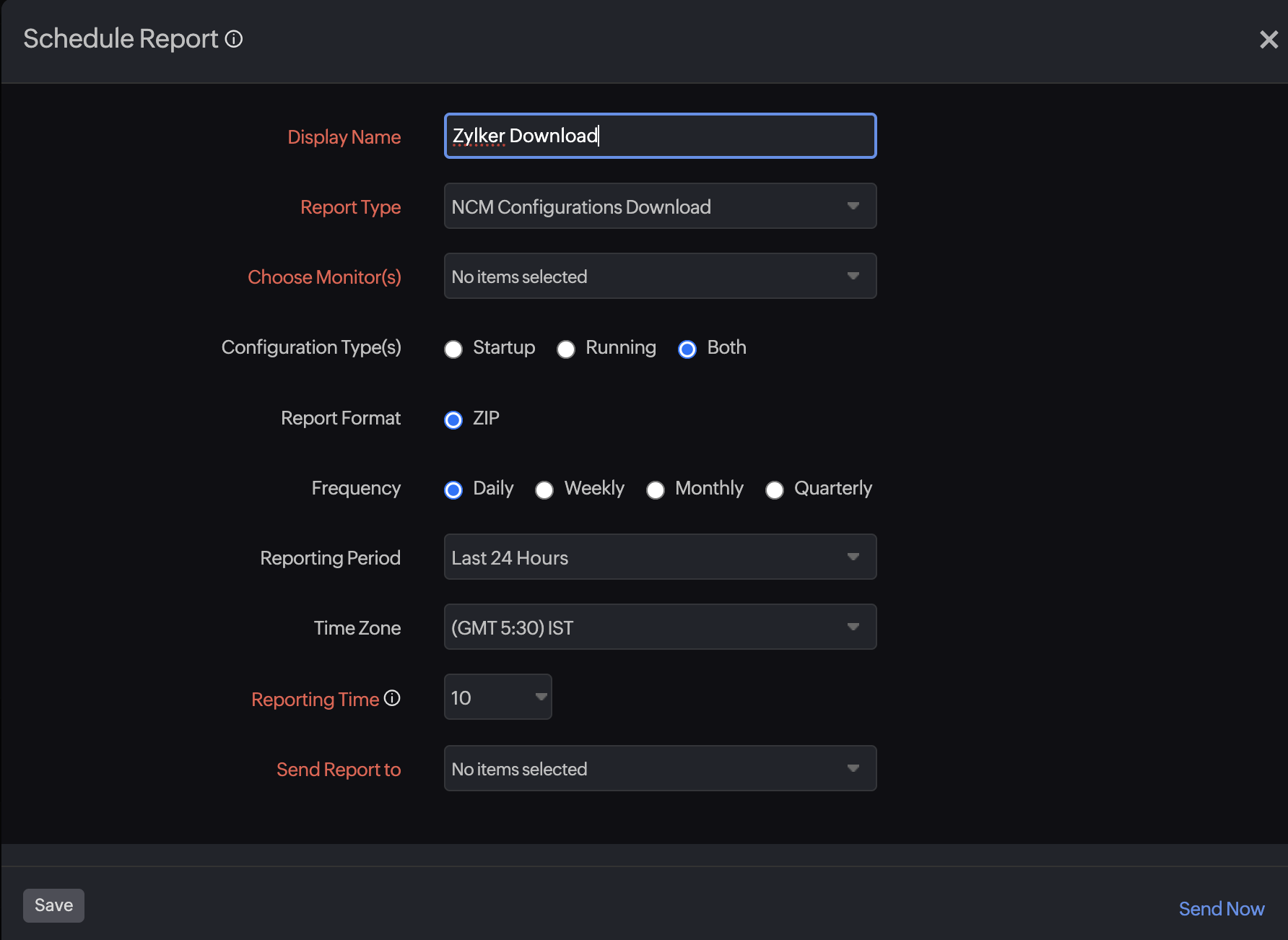 - Display Name: Provide a name for the scheduled report.