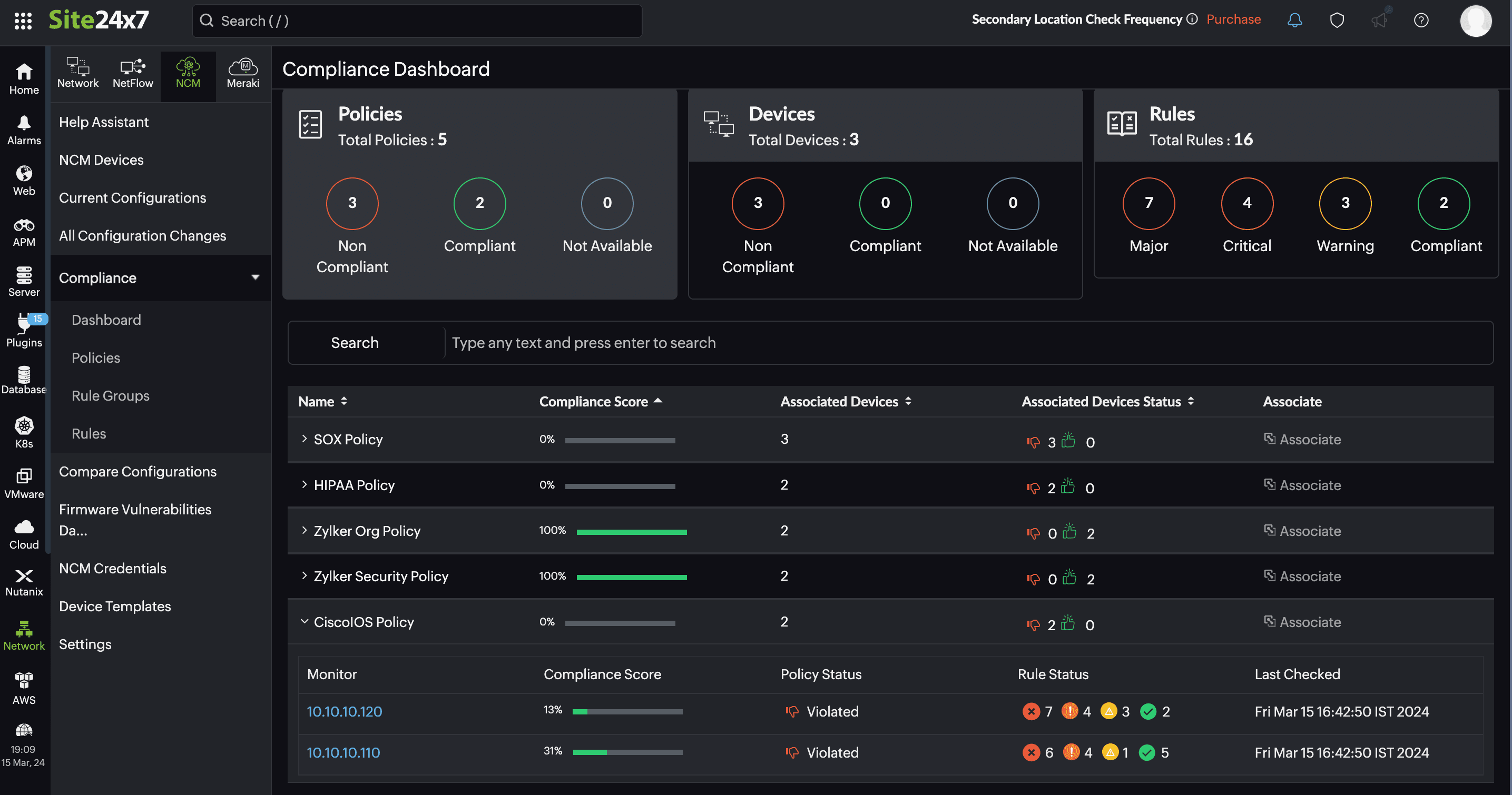- Associating compliance policies to an NCM device