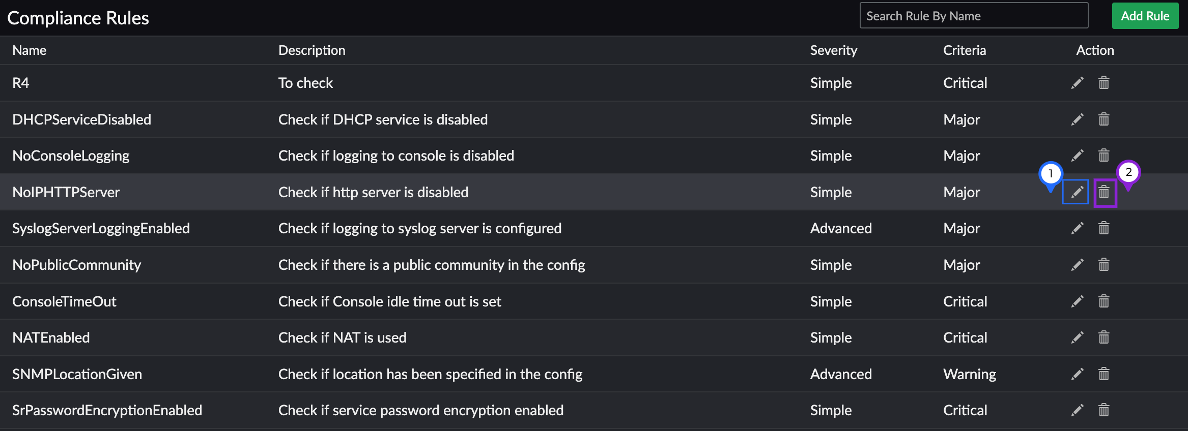 icon beside a rule (Figure 5, marked as 2) on the Compliance Rules page.