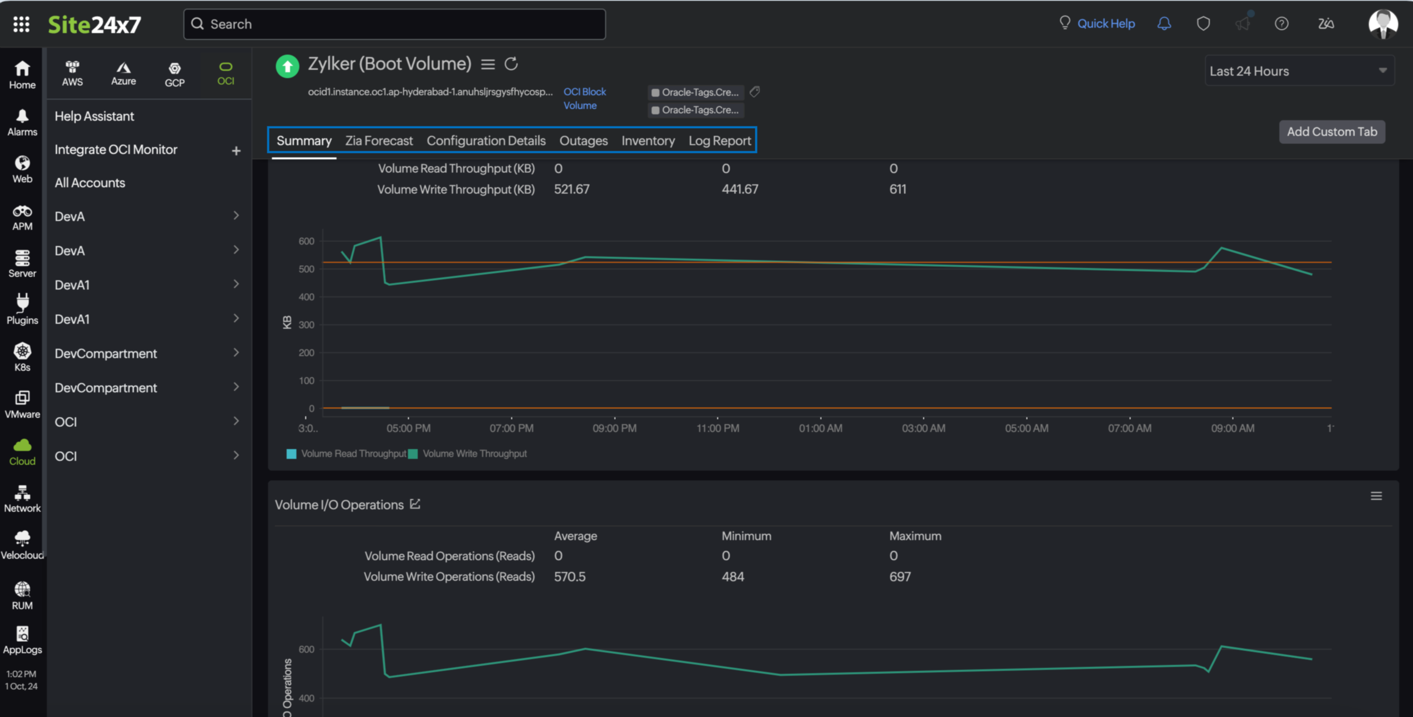 Benefits of Site24x7’s OCI Block Volume integration