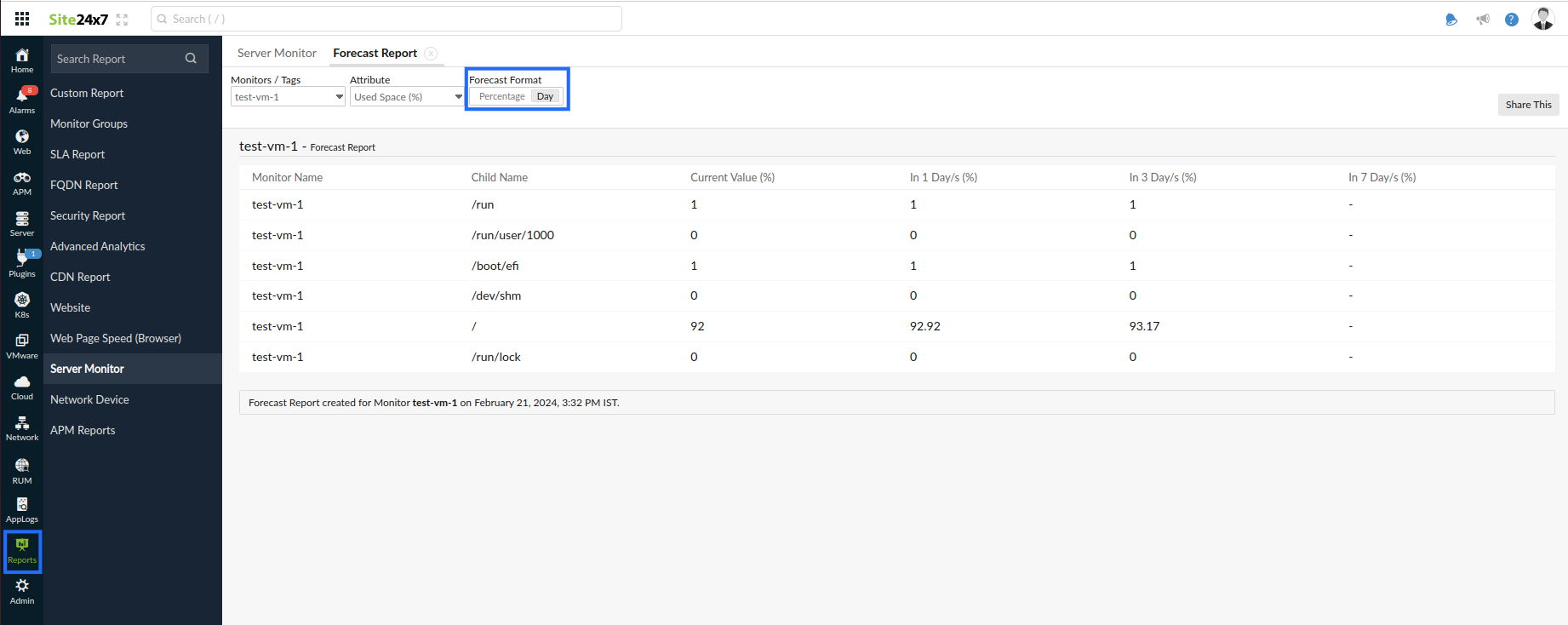- Forecast Format: Opt for the display format that suits your preference. Select either Percentage (if applicable for the chosen monitor) or Days to view the forecast in your desired format.