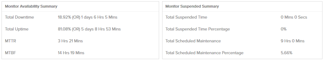 Detailed summary of downtime/uptime is presented in a tabular format. The detailed parameters are described here. To know more about all the variables and calculations, read this article.