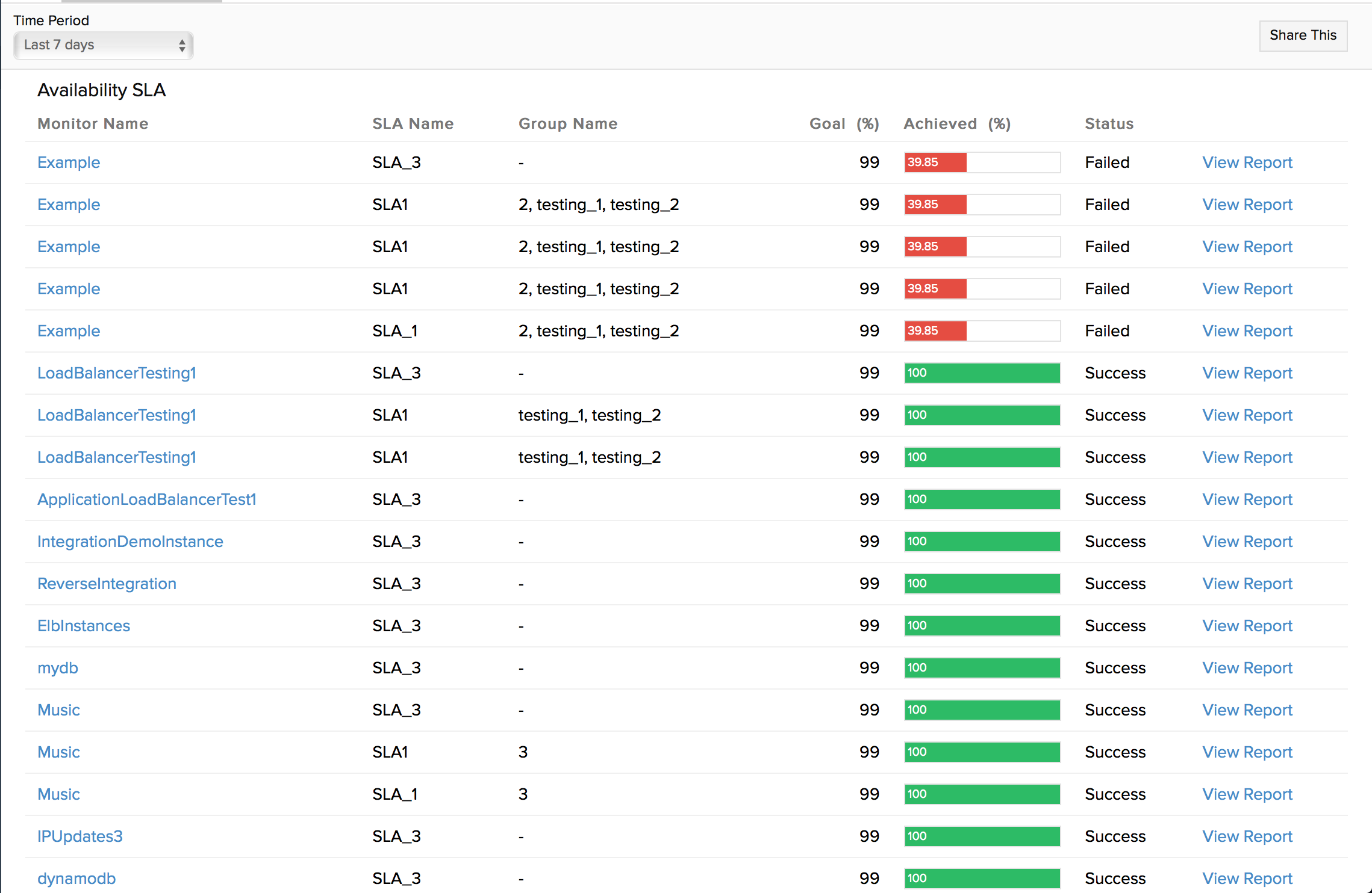 - SLA Achieved: Describes the monitor's achieved SLA value in percentage. The status of SLA is defined as Success or Failed.