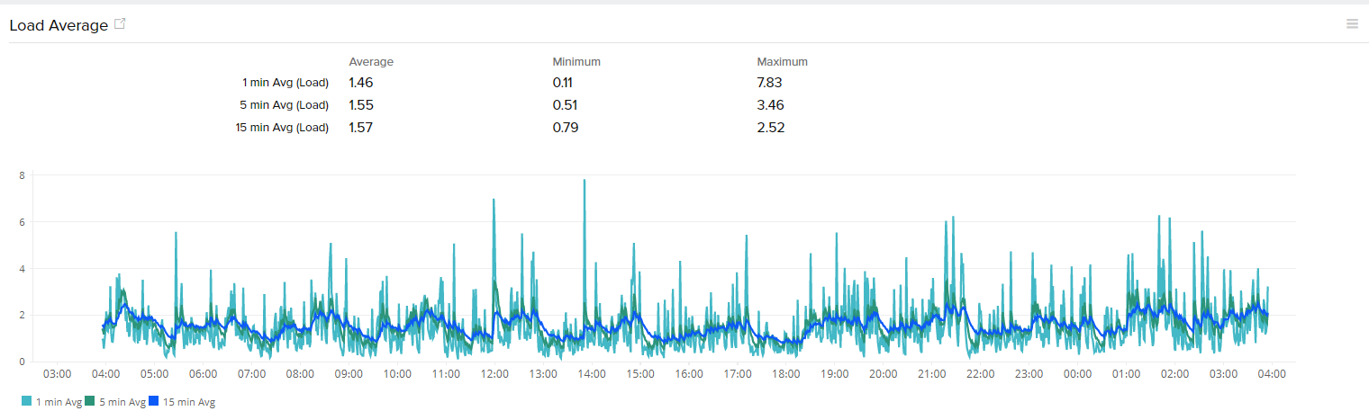 Load average is the average system load over a period of time. Data on load average gives an idea if your physical CPUs are over utilized or under utilized. In case of overload, you may check on any process that’s wasting resources, provide more hardware resources, or move some of the workload to another system.