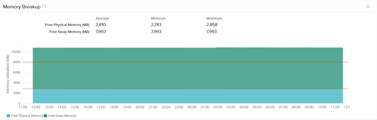 Get a split up of the free physical memory and free swap memory available in the server. The less used files can be moved to the swap space until they are needed and new files can be swapped to the RAM. This helps to better plan and allocate resources to avoid server overload and data loss.