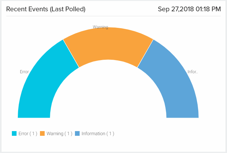 Know the latest events in your server, categorized as Warning, Error, and Information. The data is refreshed after every poll and this helps in getting to know any abnormal increase in the number of error/warning events and take immediate action.