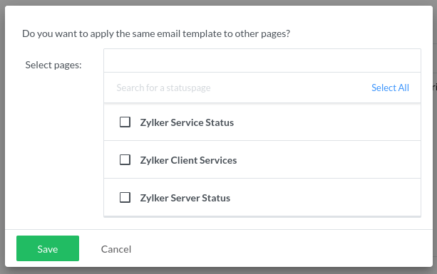 4. Use the Send Test Mail option to send a sample email to your inbox with all the changes in place. Click Save. This will trigger a pop-up where you can choose to apply the changes to other status pages as well.
